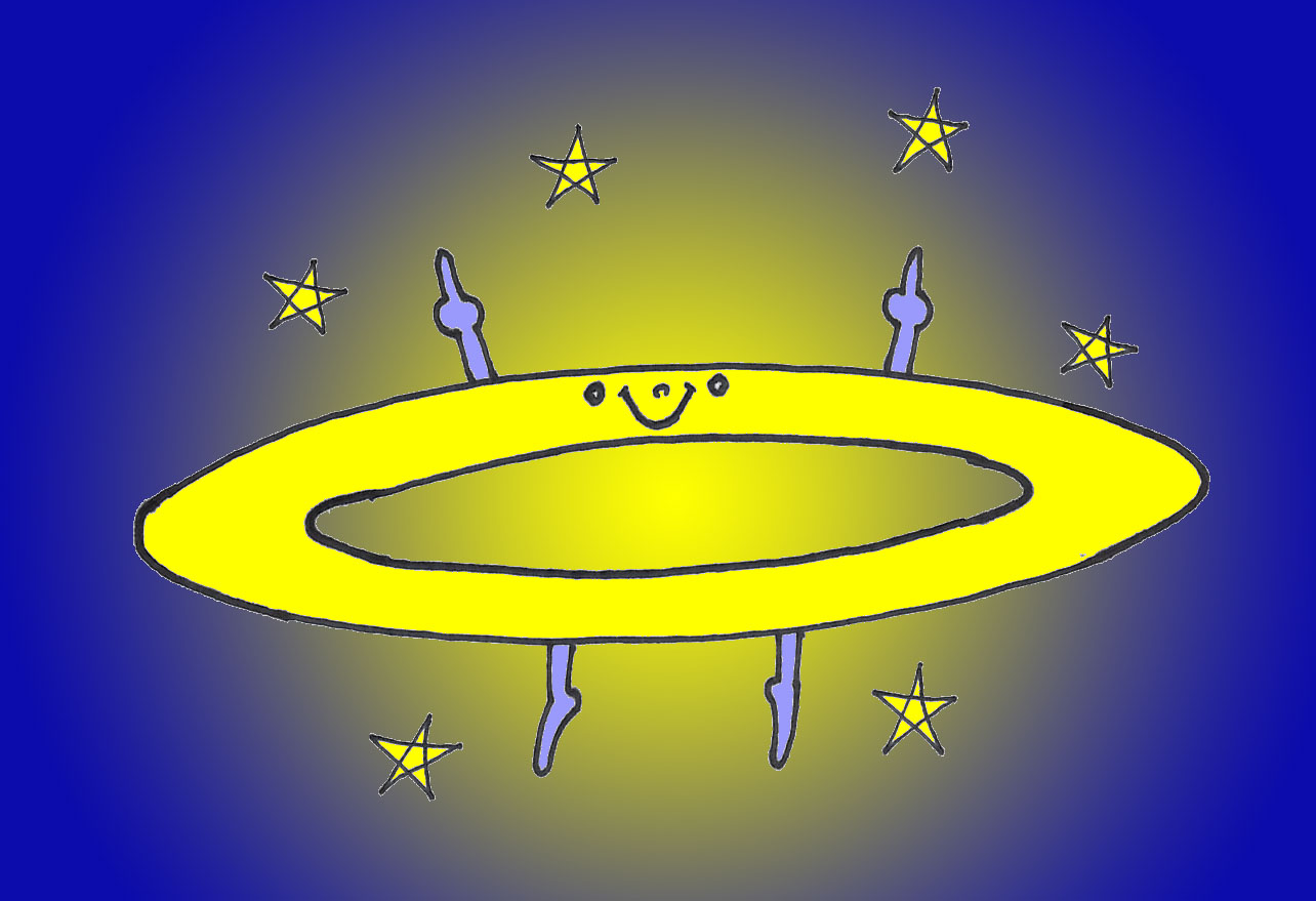 僕の名前はウチュリング!惑星の周りに見られる円盤さ!一つの輪に見えるけど実はものすごい数の輪が重なり合っているんだよ!そしてその一つ一つが小さな石や氷に粒が集まってできているんだ!不思議でしょ!!