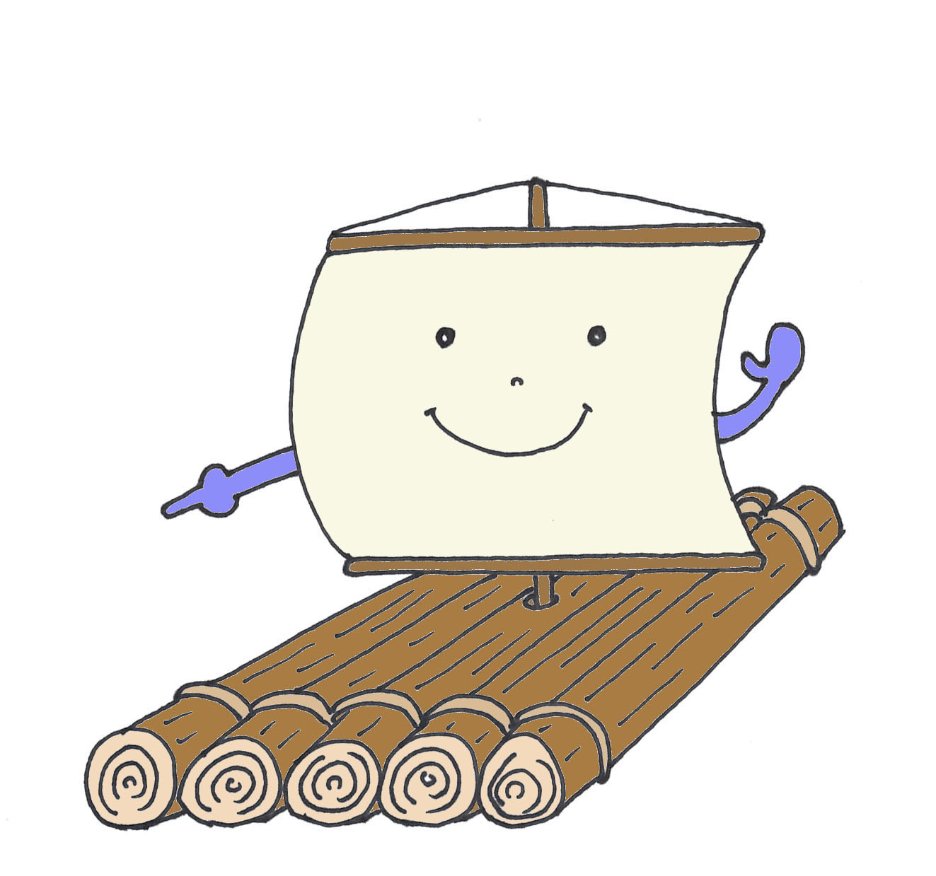 僕の名前はイカダダーン!特別ないかだのヘンテコだよ!僕はとても浮力が強くて腐食しにくい丸太で出来ていて、おまけにとても軽いんだ!だからたくさんの人をのせて進むことが出来るんだよ!使っているロープもとても強い素材で出来ていて、最高のイカダといえるでしょう!
