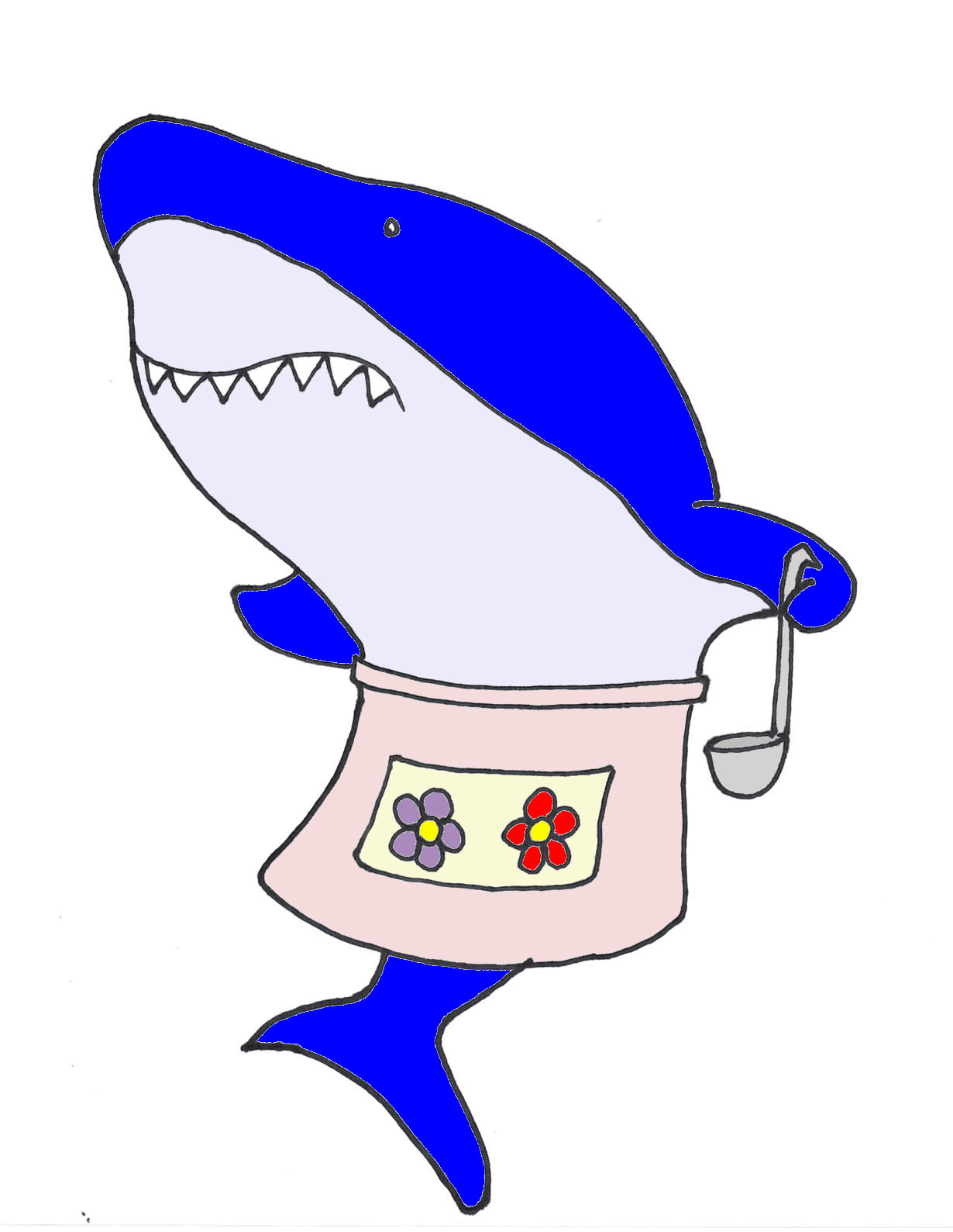 私の名前はエプロンザメ!お料理好きなサメなの!他の仲間が獲物を捕まえると私の所へ持ってくるから、その獲物は半分もらってその代わりに後の半分を美味しい料理にしてあげるの!おかげで私は獲物を捕まえに行く手間が省けて、おまけに大好きなお料理をするだけでいつも美味しい物がたくさん食べられるの!おかげで太ってきたけど!