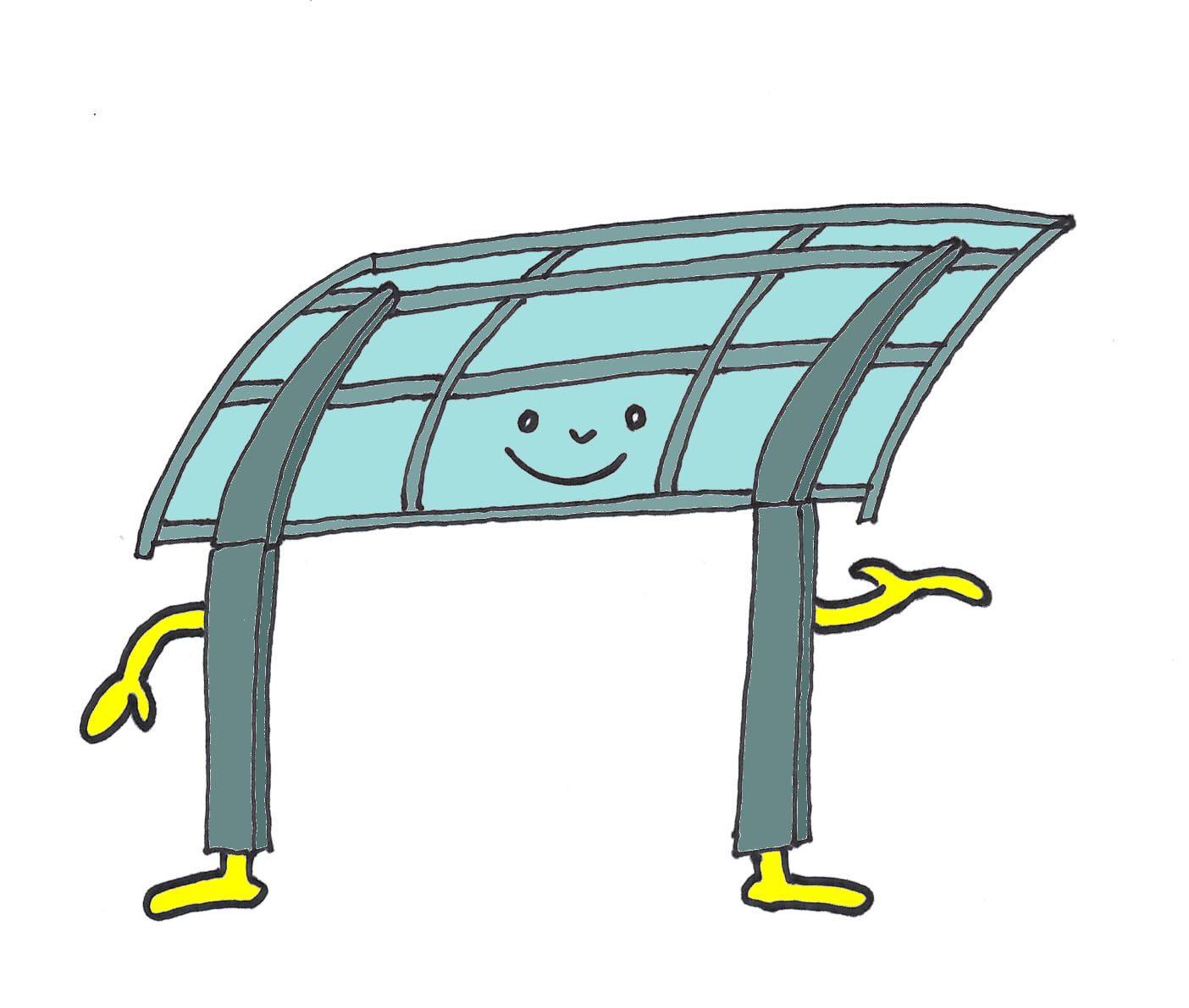 僕の名前はカーポードン!見た目は普通のカーポートなんだけど、実は雪国専用に開発されたカーポートで、夏の間に太陽熱をため込んでおくことが出来る”太陽光蓄積装置がついていて、冬になるとその熱を放出することが出来るんだ!積もった雪をすぐ溶かせるし、溶かした水も暑いお湯になって周りの雪も溶かすことが出来るんだ!どうだい、凄いだろ!!