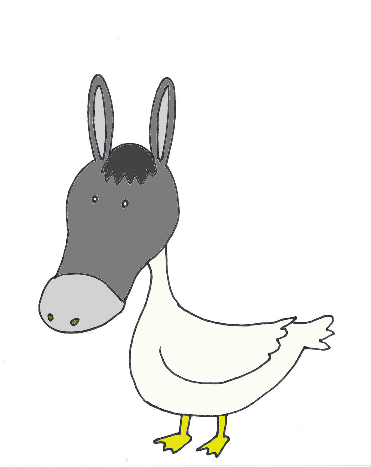 僕の名前はアヒロバン!ロバの頭とアヒルの体を持つ変なやつさ!元はただのロバだったんだけど何か特別な体が欲しくて魔法使いに頼んだらそいつが魔法が下手なやつでこんなになっちゃったんだ!参ったよ!でも泳ぎは上手になったからまあいいかなと思っているよ!